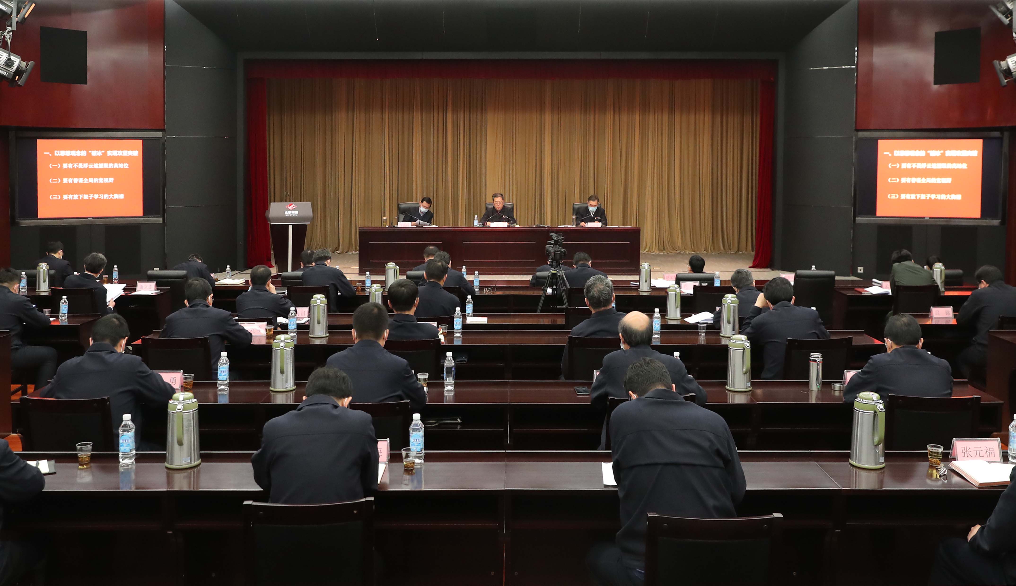山钢集团党委书记、董事长侯军作了题为《咬定目标承压奋进,科学应变聚力攻坚,推动改革发展重点工作实现新突破》的讲话,党委副书记、总经理陶登奎主持会议,并作了题为《只争朝夕共克时艰,笃定目标奋力突破,全力以赴把失去的时间、造成的损失夺回来》的讲话,省管企业高质量发展第三服务队队长王海林出席会议,山钢集团党政领导,有关单位、总部部门及直属机构相关负责人,省管企业高质量发展第三服务队部分成员分别在主、分会场参加会议。