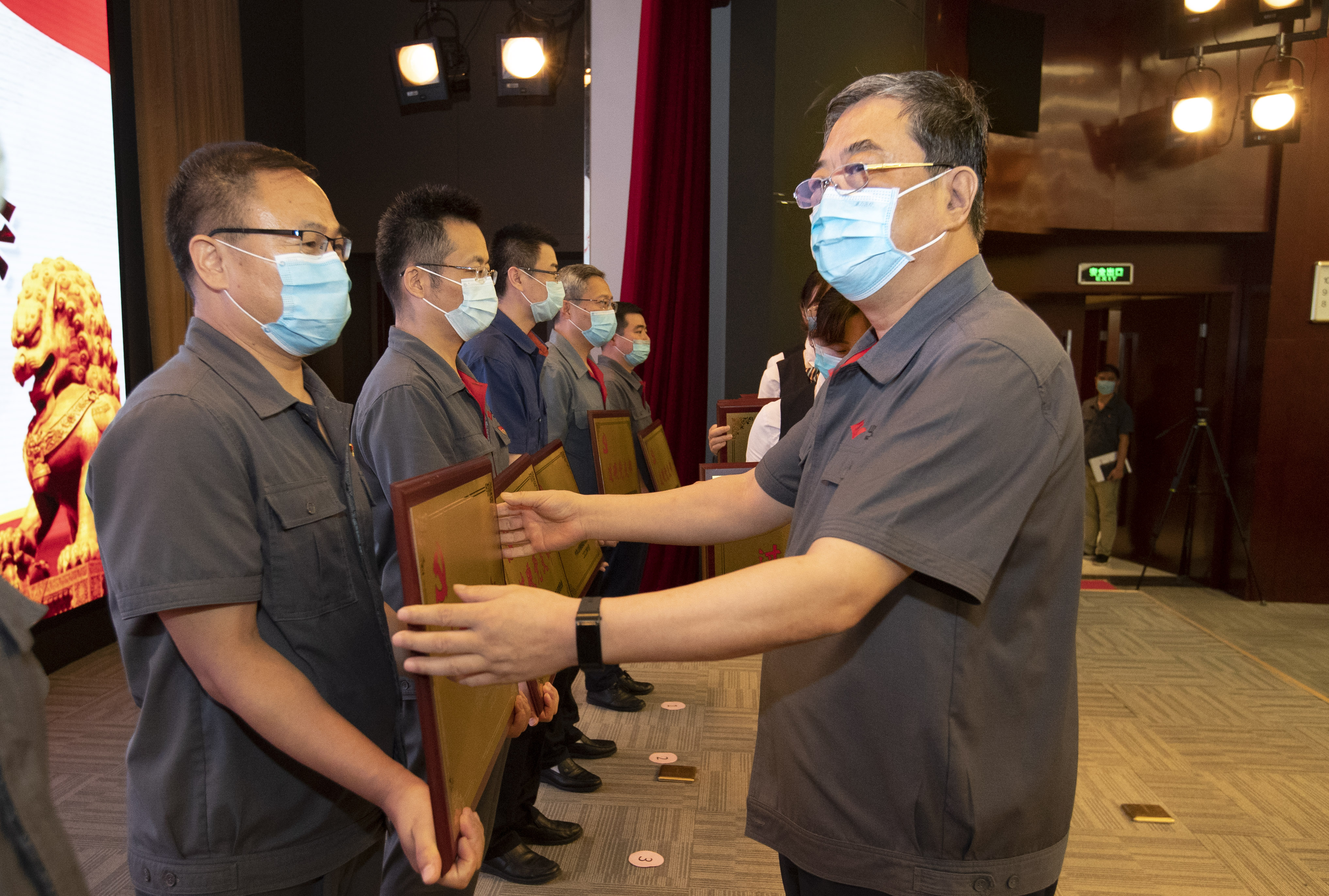 大会在嘹亮的国歌声中开始。全体人员起立,合唱《中华人民共和国国歌》。陶登奎领誓,与会人员共同重温入党誓词。苏斌宣读山钢集团党委表彰决定,决定授予山钢股份莱芜分公司炼铁厂高炉三车间等52个党支部为山钢集团第三批过硬党支部。侯军为10个过硬党支部代表颁发奖牌(上图:李建辉 摄)。